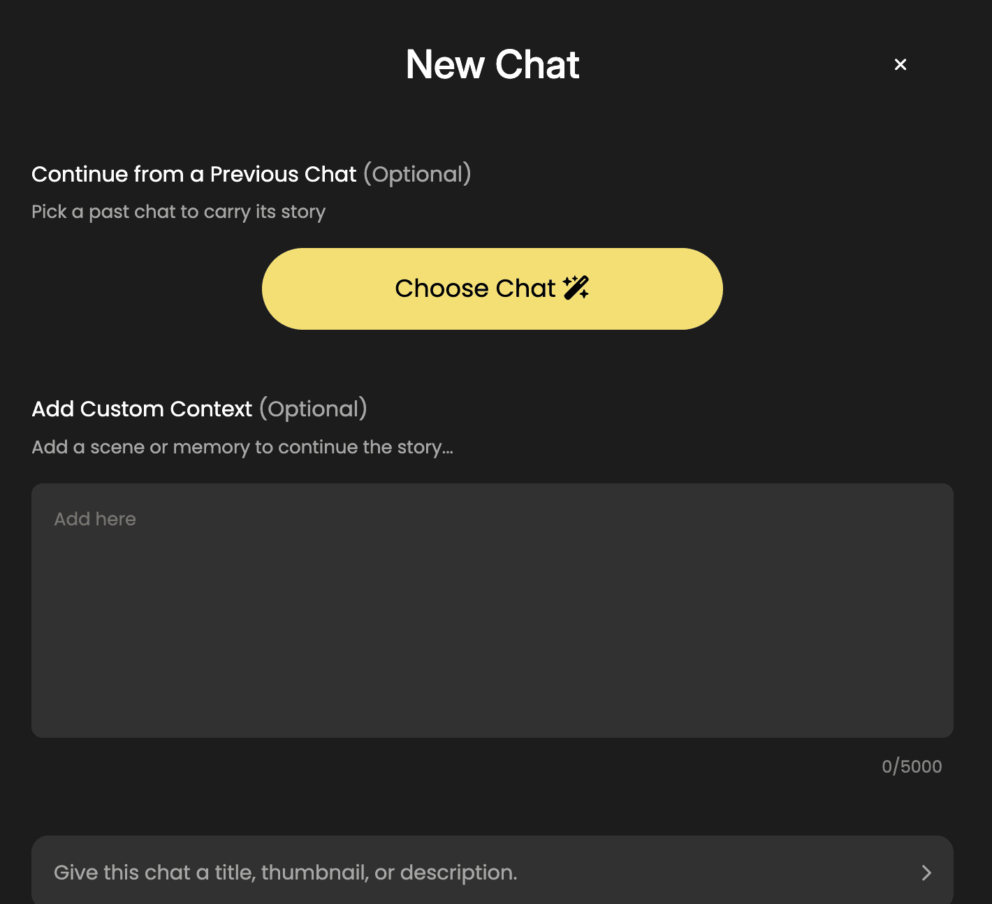 Another subtle but powerful feature is the option to “Choose Chat” to carry context from a past conversation into a new one, even with a different character. This is invaluable for maintaining story continuity and preventing plot points from being dropped. It’s like having a consistent editor for your ongoing narrative, making sure the AI doesn’t forget where you’ve been, which in turn helps it understand where you’re going (or *not* going too fast).